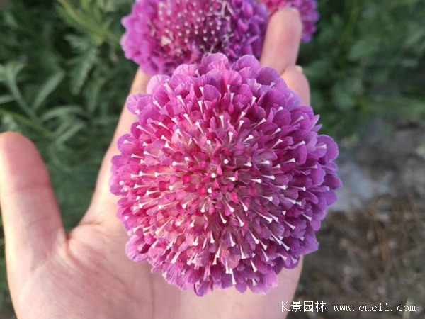 紫盆花是一種一年生的草本植物,春季種植等到6-7月份開花,紫盆花它的花朵是柱狀花序,大小在4-5公分顏色很多,有紅、粉、紫、白等多種顏色,是一種常見的園林綠化觀賞植物,可在花園、公園、花壇等處種植,也可以作盆栽或者是切花使用。