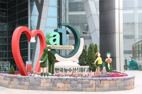 離花市不遠的農(nóng)水產(chǎn)物流通協(xié)會大樓前的廣場雕塑